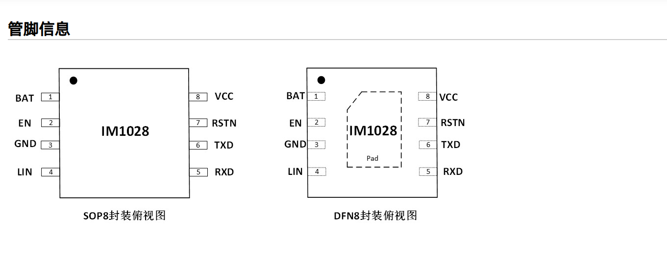 • 支持 LIN/BAT 管脚±8KV ESD