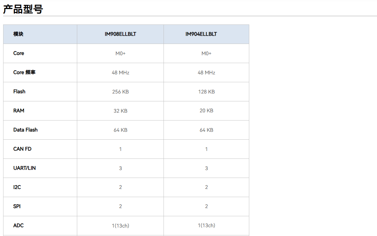 32位 Arm® Cortex®-M0+ 内核,CPU 主频 48 MHz