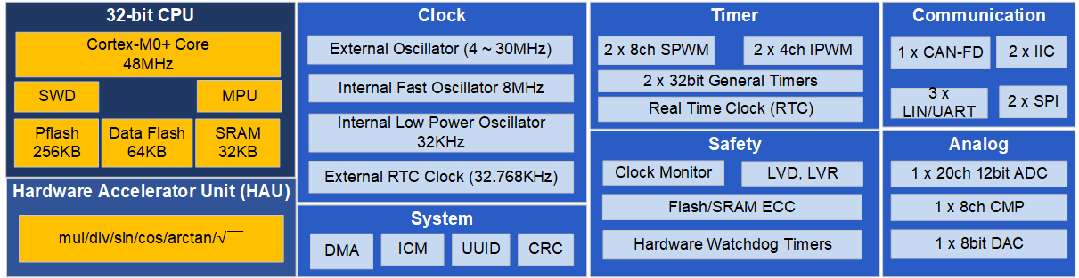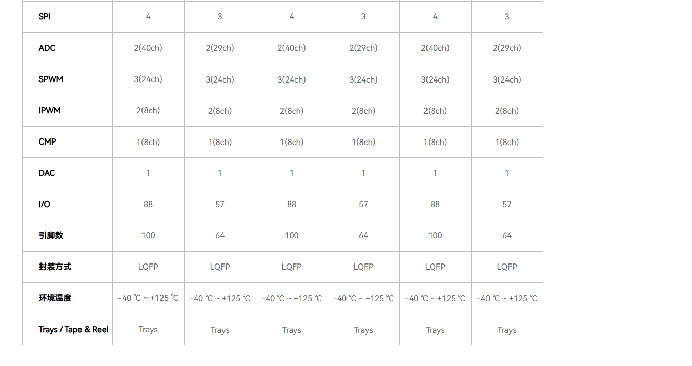 2 x 20通道 12位 1Mbps ADC,32 通道 16位 PWM,支持死区插入和故障检测功能